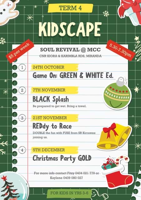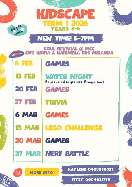 For more information contact kidscape@mirandacong.org.au or phone the Church Office on 8517 0841.
